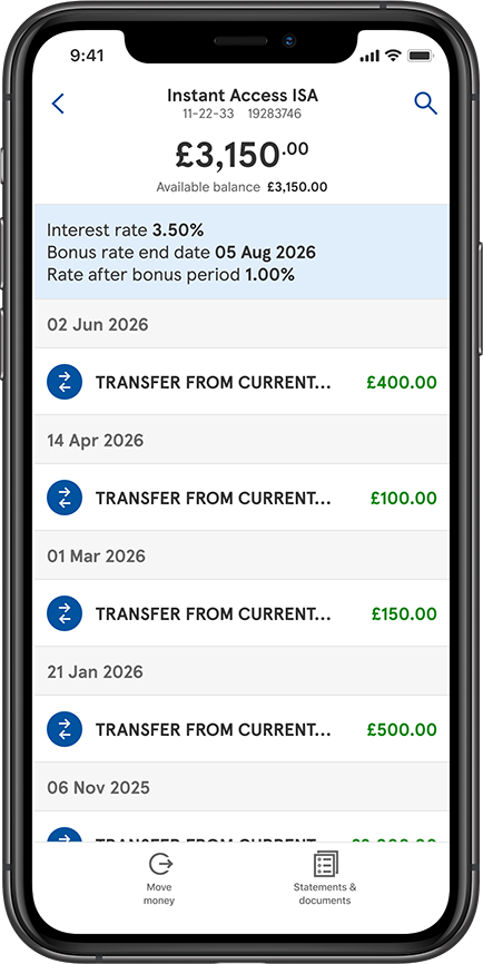 You may need to wait up to 48 hours after account opening to send money via your bank account. You’ll need your Cash ISA sort code and account number. To do this, you'll find this on your statement, your welcome pack, or in Online Banking or the Mobile App.