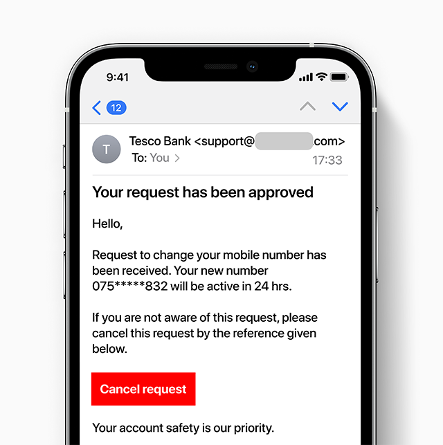 If you've received a suspicious email you think might be a scam, forward it to us at phishing@tescobank.com